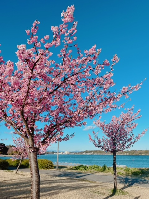 只今、佐鳴湖公園は河津桜がとてもきれいに咲いています